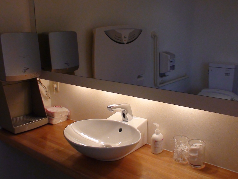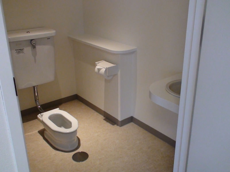 車いすも楽々入る広々としたトイレ。