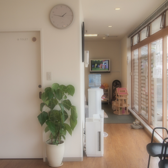 待合室から託児ルームを眺めた光景。